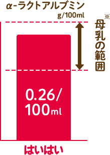 大切な赤ちゃんのことを考えて母乳に近づけたミルクです。母乳に含まれる主要なたんぱく質「α-ラクトアルブミン」を母乳に近い量まで強化しました。また、赤ちゃんの負担に配慮して母乳に含まれない「β-ラクトグロブリン」を低減しています。